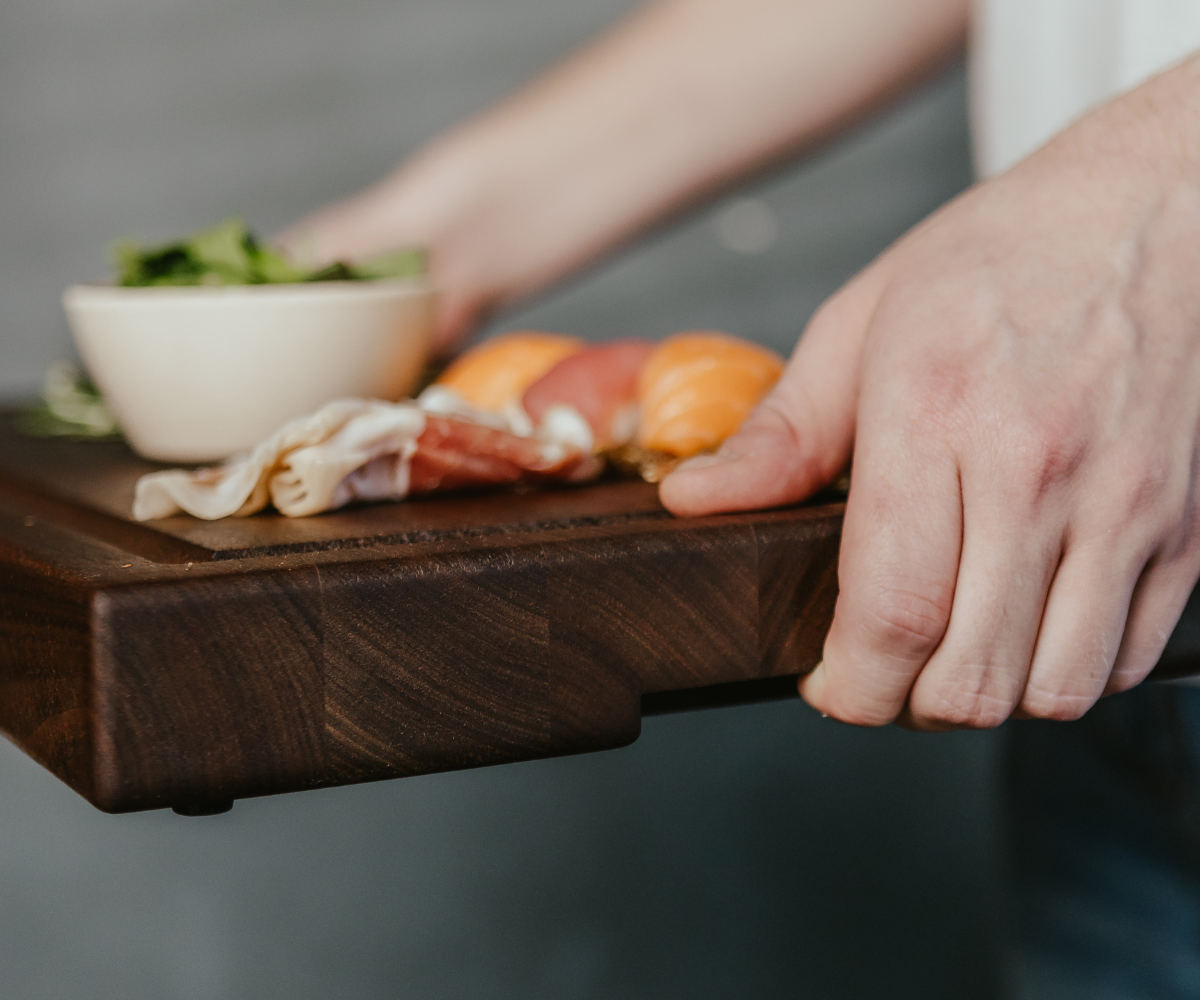 Made from premium American hardwood, our boards are built to last a lifetime of meals. At 1.5 inches thick, they’re durable without being bulky. Non-slip feet keep things steady, and built-in handles make carrying easy — from prep to presentation. Prefer a juice groove? Add one for mess-free carving and cutting.