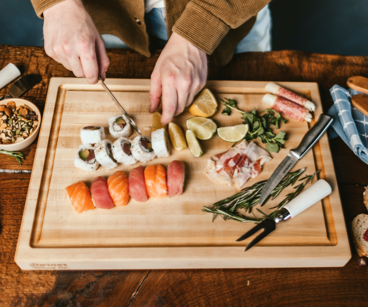 Our best-selling cutting board is a handcrafted, American-made hardwood board built just for home cooks. Loaded with tons of features, it's made to handle everything you throw at it.