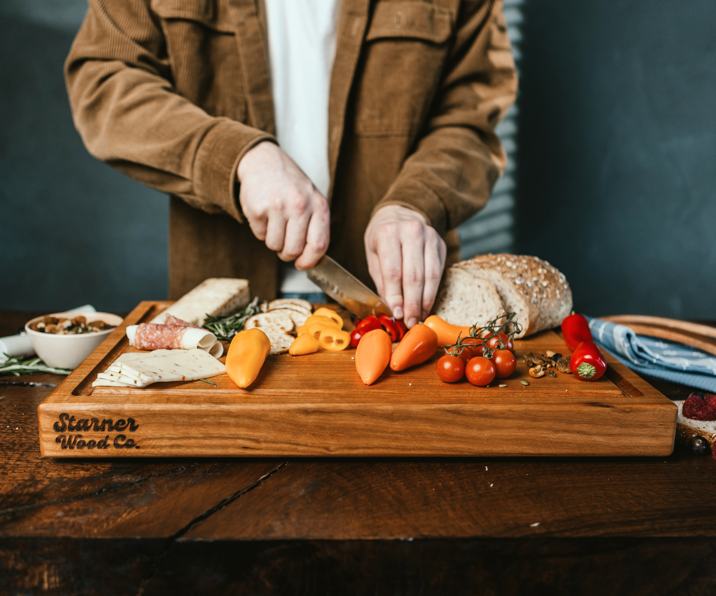 Yes — every board arrives fully finished, oiled, and waxed by hand, ready to go right out of the box. At Starner Wood Co., we apply multiple coats of food-grade mineral oil followed by our signature board butter (a mix of mineral oil and natural beeswax) to deeply hydrate and seal the wood. This creates a protective barrier that resists moisture, enhances the natural grain, and gives your board a soft, rich sheen.